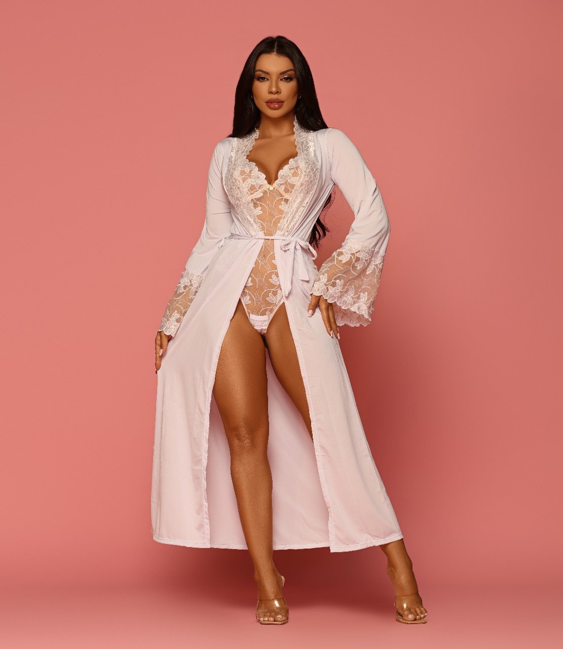 - 1 Robe liganete com detalhes em renda e tule bordado.